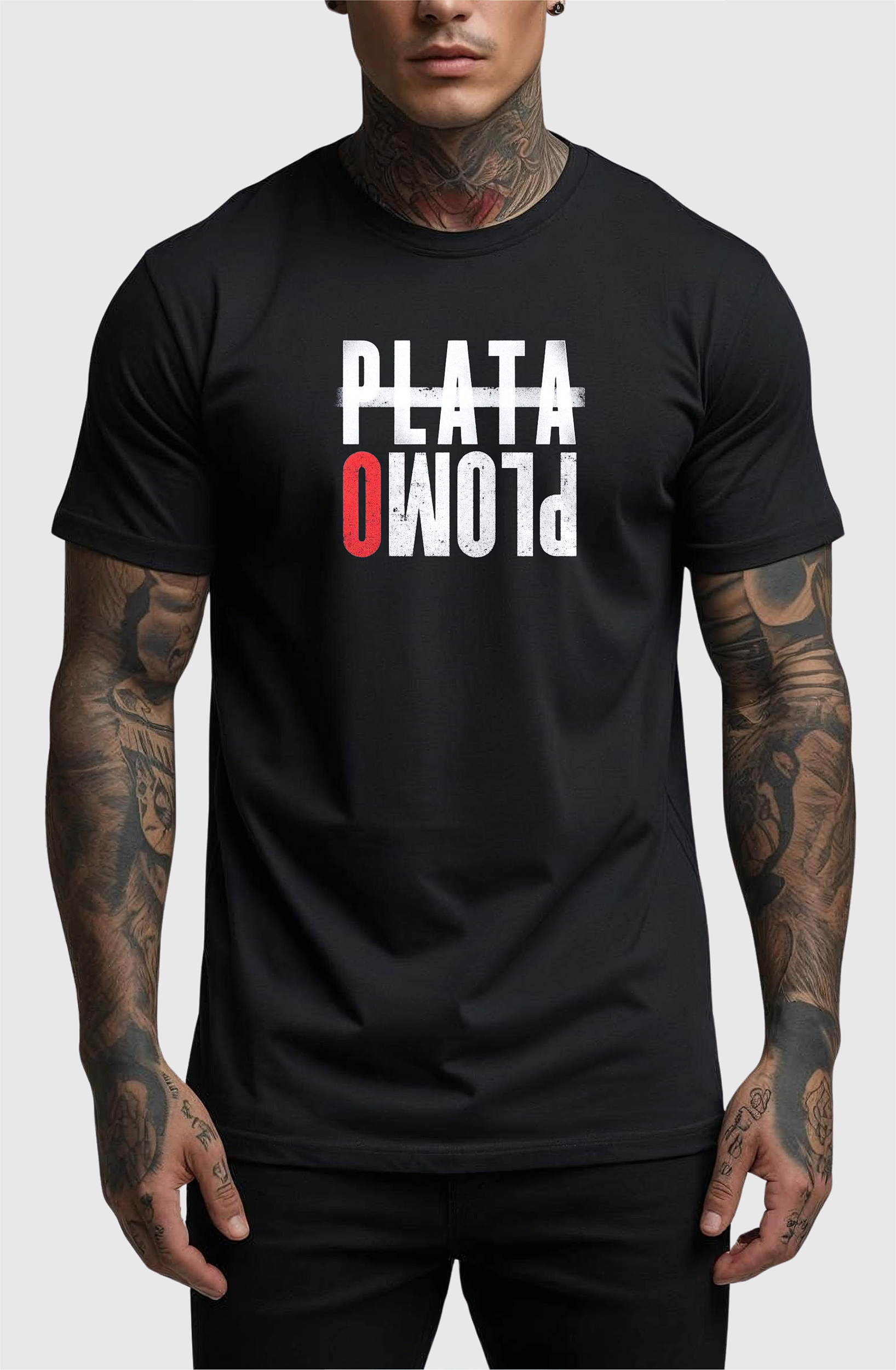 CAMISETA MASCULINA ALGODÃO PREMIUM - PLATA O PLOMO BLACK
